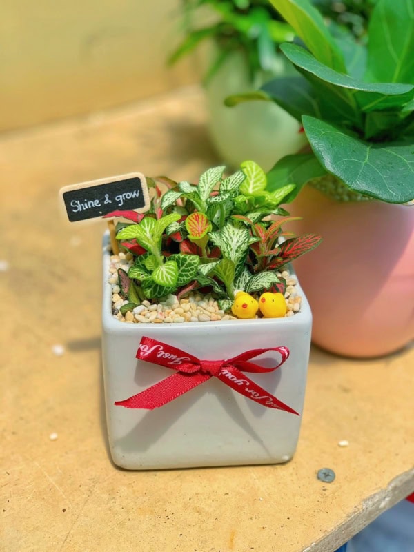 Vườn cung cấp đầy đủ các tông màu từ đỏ nhiệt huyết, hồng ngọt ngào đến xanh bạc hà thanh mát để bạn dễ dàng lựa chọn màu yêu thích. Chậu có lỗ thoát nước chống úng nước cho cây. Đặc biệt nếu tặng bạn bè, vườn decor thêm phụ kiện xinh xắn theo yêu cầu.