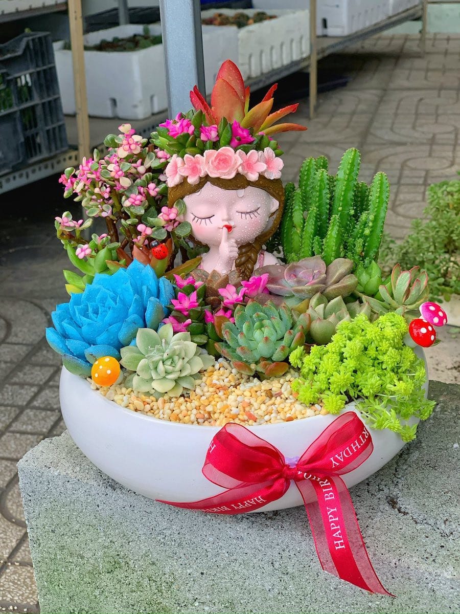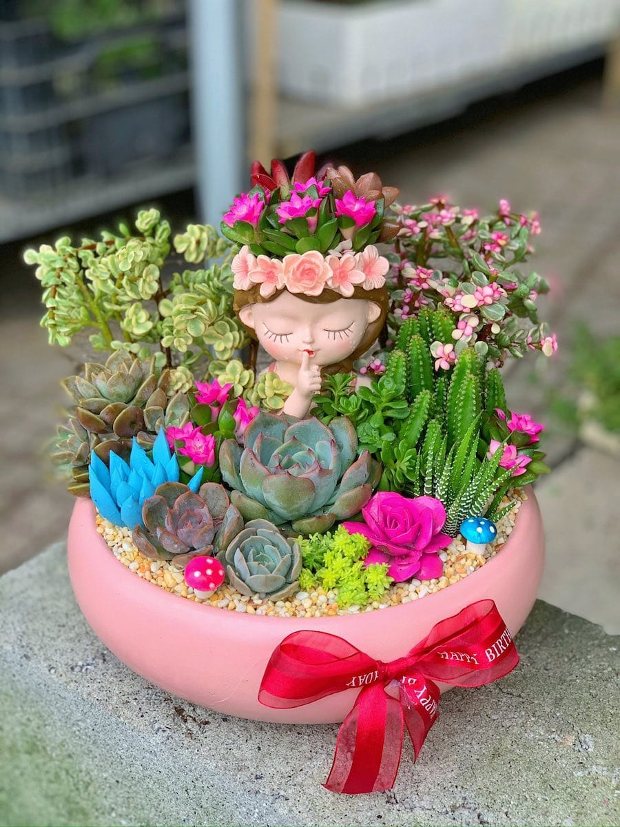 chậu tiểu cảnh sen đá xương rồng cô gái