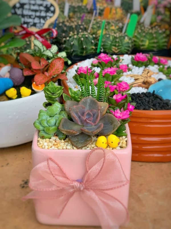 Tiểu cảnh sen đá và xương rồng ngày càng phổ biến trong giới quà tặng nhờ vào sự kết hợp tạo nên những tác phẩm ấn tượng. Ngoài ra, tiểu cảnh còn là biểu tượng của sự sống bền bỉ và tình cảm chân thành.