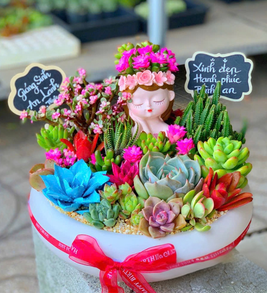Tiểu cảnh sen đá và xương rồng ngày càng phổ biến trong giới quà tặng nhờ vào sự kết hợp tạo nên những tác phẩm ấn tượng. Ngoài ra, tiểu cảnh còn là biểu tượng của sự sống bền bỉ và tình cảm chân thành.