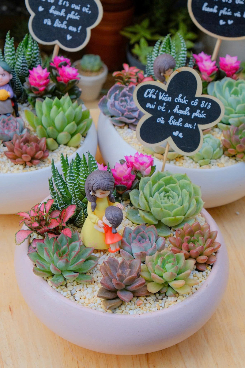 Chậu tiểu cảnh sen đá để bàn đẹp I SD20005