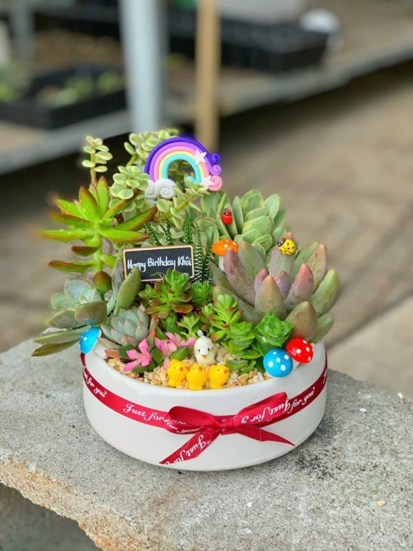 Tiểu cảnh Sen đá I Quà Tặng Sếp Nữ Cao Cấp – Cùng Lời chúc Thịnh Vượng