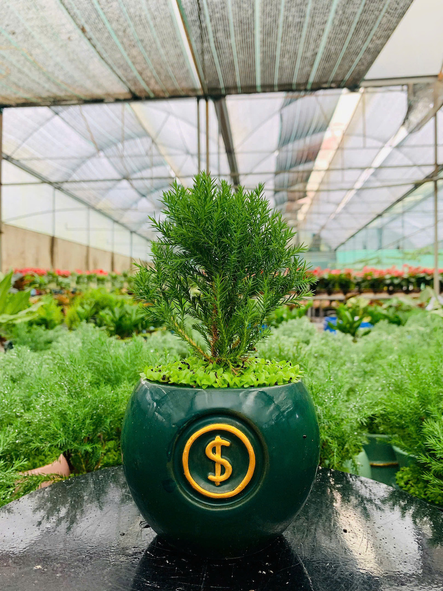 Chậu cây Tùng bồng lai tròn đồng xu may mắn I 2701265